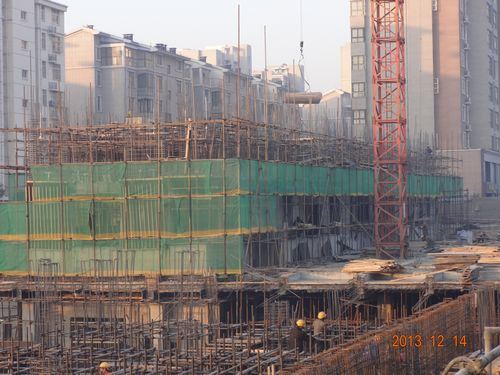 2、象藍天2#樓-1層梁板鋼筋綁扎,模板安裝。