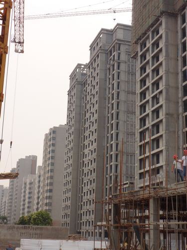 1、萬象藍天1#樓砌筑加氣混凝土塊完成。