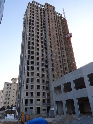 2、萬象藍(lán)天2#樓內(nèi)墻罩白,水電安裝,電梯安裝,石材施工。