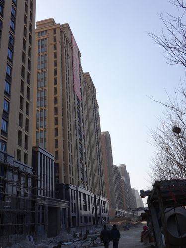 2、萬象藍天2#樓石材施工,衛(wèi)生打掃。