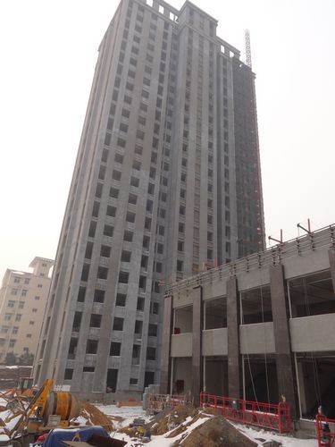 3、萬象藍(lán)天3#樓外墻保溫完成,鋪設(shè)室內(nèi)暖氣管道。