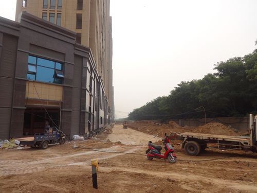 3、萬象藍(lán)天室外景觀道路灰土施工。