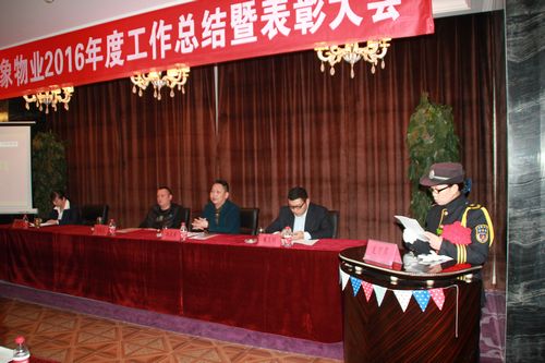 回顧過(guò)去,成功或汗水都隨時(shí)間流逝成為過(guò)去,展望新一年我們意氣風(fēng)發(fā)。經(jīng)過(guò)緊張的忙碌、籌備工作,萬(wàn)象物業(yè)公司2016年度總結(jié)暨表彰大會(huì)于1月20日隆重召開(kāi)。地產(chǎn)公司總經(jīng)理韓志軍、地產(chǎn)公司總經(jīng)理助理胡曉東、地產(chǎn)公司行政總監(jiān)魏炎釗、物業(yè)公司總經(jīng)理梁桂平列席會(huì)議。