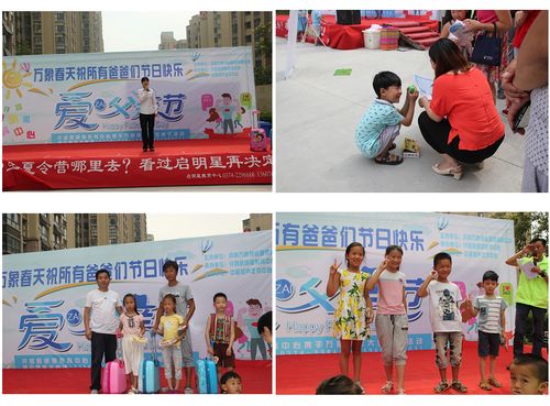 萬象物業(yè)的員工和啟明星教育中心精心布置的舞臺、熱鬧的活動現(xiàn)場精彩紛呈的文藝演出,不間斷的抽獎環(huán)節(jié),以愛為名組織的各種小游戲,一個個老爸拼搏的身影,影響、教育著孩子們,將活動推向一波又一波的高潮。