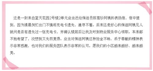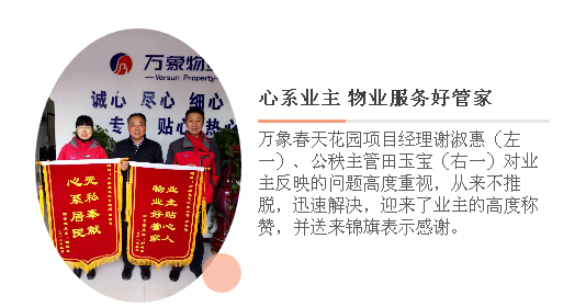 這些榮譽(yù)的取得離不開萬象物業(yè)全體工作人員的努力和付出,他們不分白天、黑夜,更不畏酷暑、嚴(yán)冬,始終常年堅(jiān)守在各自的崗位上,為廣大業(yè)主提供精細(xì)、貼心的服務(wù)。萬象物業(yè)人用熱忱的態(tài)度、積極的心態(tài)去面對(duì)每天要處理的繁雜的事務(wù),用一顆顆勇于奉獻(xiàn)的心去詮釋物業(yè)人的責(zé)任和擔(dān)當(dāng),更是用真誠和關(guān)心贏得了業(yè)主的關(guān)心和尊重。