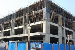 5、萬象新天臨街樓四層模板安裝、鋼筋綁扎。