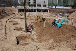 5、6#樓基坑開挖完成90%,抗浮錨桿鉆孔完成80%.