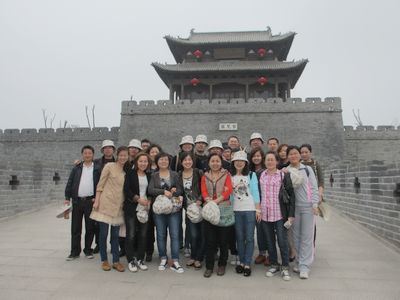 第一天我們首先參觀了商賈云集、建筑風格獨特、文化底蘊深厚的秀美古城——臺兒莊古城。1938年臺兒莊大戰(zhàn)時這座古城被侵略者的炮火夷為廢墟。現(xiàn)在當?shù)卣衷谠钒凑赵不謴土诉@座古城,走在古城的街道中,仿佛看到了昔日的“商賈迤邐、一河漁火、歌聲十里、夜不罷市”的繁榮景象。