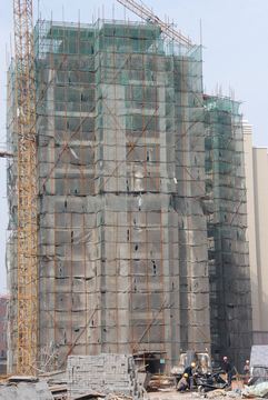 2、2#樓內(nèi)墻外墻抹灰90%,外保溫40%,樓地面完成2層。