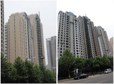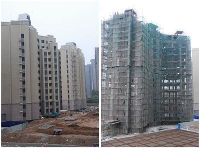 1、1#樓樓內(nèi)墻批白完成,安裝電梯,外墻石材。