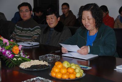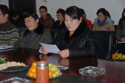 默默無聞的財務部老員工汪萍(右一)同志在發(fā)言