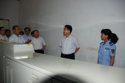 省政法委書記劉滿倉(中)視察小區(qū)監(jiān)控室