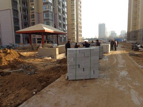3、萬象春天室外部分:道路鋪設(shè)道岈和水系鋪貼石材。