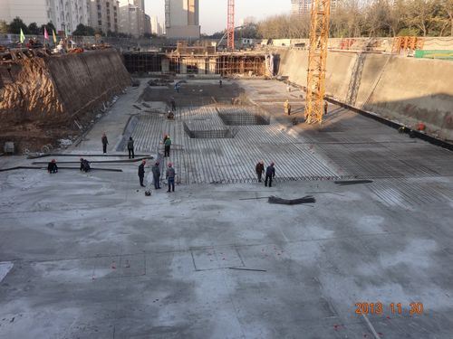 5、萬象藍(lán)天2#樓筏板鋼筋綁扎。