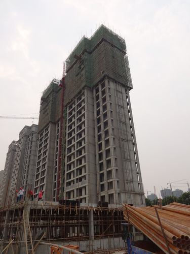 3、萬(wàn)象藍(lán)天2#樓24層鋼筋綁扎、模板安裝,其中商鋪部位一層完成。