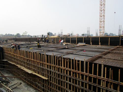 萬(wàn)象城市綜合體水岸香堤1號(hào)樓1.16軸~12軸地下室、車庫(kù)模板及鋼筋安裝