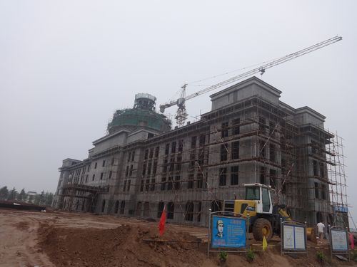3、萬象城市綜合體水岸香堤1#樓外墻抹灰施工完成,石材龍骨骨架施工。