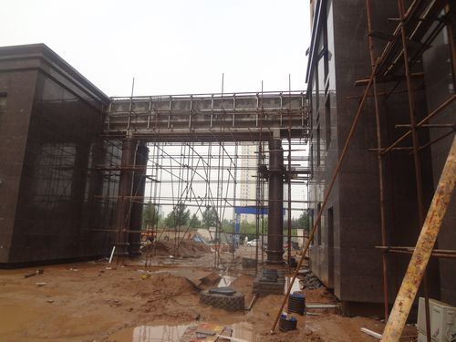 1、萬象藍天北側(cè)圍墻砌筑。大門石材施工。