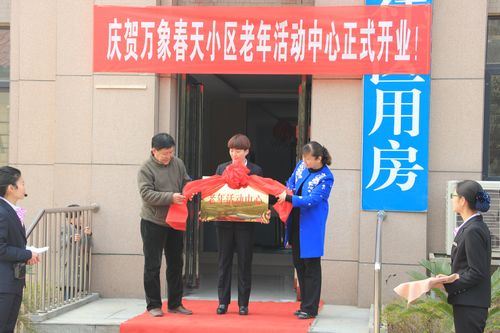2016年3月19日萬(wàn)象春天小區(qū)老年活動(dòng)中心正式成立。在這萬(wàn)物復(fù)蘇,春意盎然的季節(jié)里,萬(wàn)象春天小區(qū)隆重舉行小區(qū)老年活動(dòng)中心成立慶典儀式。希望通過(guò)開(kāi)展老年活動(dòng)來(lái)豐富老年人的業(yè)余文化生活,使老年人老有所依、老有所學(xué)、老有所為、老有所樂(lè),樹(shù)立敬老、愛(ài)老、助老的傳統(tǒng)美德,從而促進(jìn)萬(wàn)象春天小區(qū)和諧文明的建設(shè)。