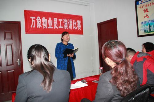 為鼓勵(lì)員工立足本職崗位、爭(zhēng)做工作創(chuàng)新的先鋒和樂(lè)于奉獻(xiàn)的楷模,進(jìn)一步弘揚(yáng)萬(wàn)象物業(yè)人的感人事跡和奉獻(xiàn)精神,加強(qiáng)企業(yè)文化建設(shè),推動(dòng)事業(yè)發(fā)展,3月份公司特組織了以“崗位演講、崗位競(jìng)聘”為主題的職工演講比賽活動(dòng)。
