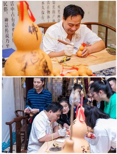 葫蘆烙畫區(qū),大師正在專心烙畫,周邊的朋友雖然很想要充滿藝術(shù)的葫蘆,但都在耐心等待,人文氤氳的傳統(tǒng)手工藝品,為活動(dòng)增添了一抹詩(shī)情畫意。