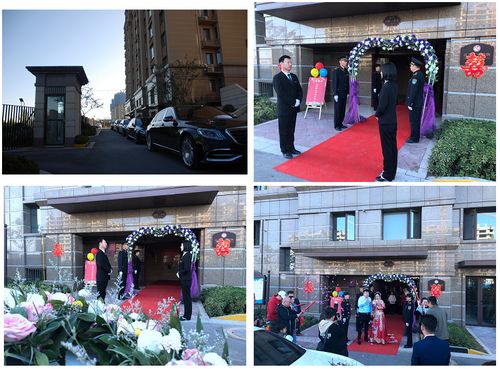 當(dāng)萬象物業(yè)得知水岸香堤小區(qū)有新人要結(jié)婚的消息后,立即組織協(xié)調(diào),安排物業(yè)人員連夜布置現(xiàn)場(chǎng)。物業(yè)人員把紅地毯從單元門口一直鋪到電梯口,還在樓道內(nèi)貼上大紅喜字和彩色氣球,并專門抽調(diào)8名訓(xùn)練有素的保安人員和2名客服人員組成儀仗隊(duì)來迎接新人和親友。從迎親車輛進(jìn)入園區(qū)門口開始,每到一個(gè)路口,都會(huì)有專人為其指揮車輛。整齊的著裝、潔白的手套、貼心的服務(wù),顯示出萬象物業(yè)良好的風(fēng)貌,也得到了業(yè)主及來賓的贊揚(yáng)。