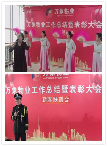 歌伴舞《紅梅贊》、服裝秀《穿越》,還有風(fēng)格迥然不同的歌曲和表演形式,如《笨小孩》、《太湖美》、三句半《物業(yè)人賀新年》、詩朗誦《我是物業(yè)人》等節(jié)目都將我們的新春聯(lián)誼會推向了一波又一波高潮,特別是公秩大哥帶來的曲劇《李豁子做夢》更是幽默風(fēng)趣,引得大家捧腹大笑。