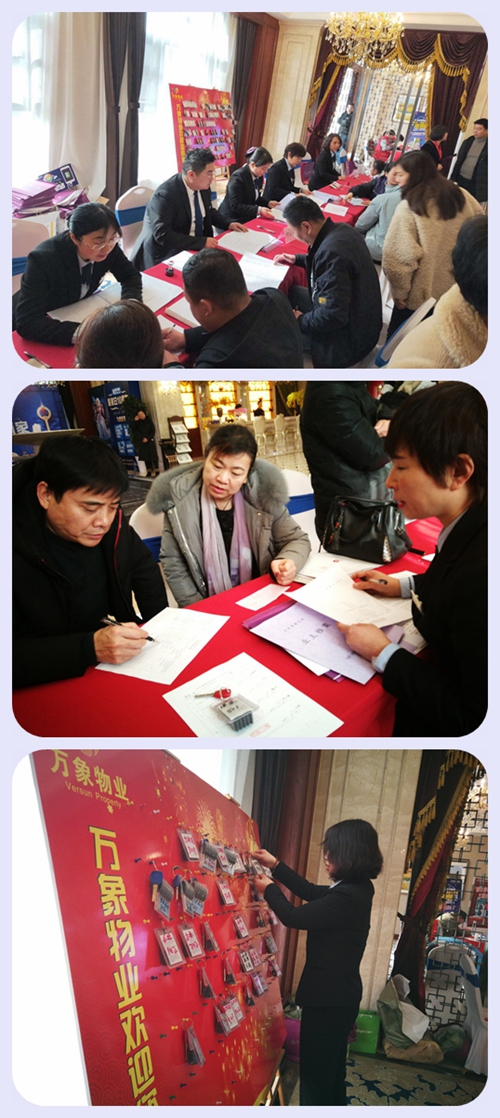 上午八點交房現(xiàn)場喜氣洋洋,一大早工作人員便在各自的崗位上等待業(yè)主的到來,隨處可見的工作人員,一句"恭喜您,歡迎回家"表達著萬象物業(yè)最真摯的問候。
