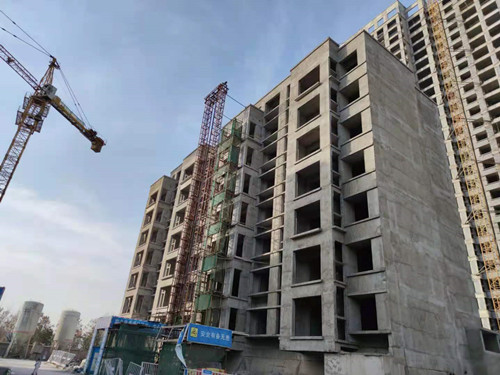 4#主體已封頂二次結(jié)構(gòu)砌筑內(nèi)外粉完成,外墻保溫完成70%。