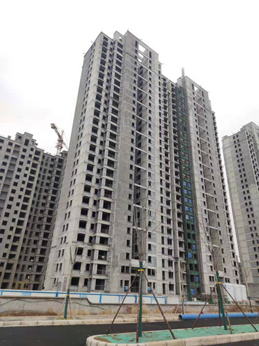 4#主體已封頂二次結(jié)構(gòu)砌筑內(nèi)外墻抹灰完成,外墻保溫完成70%。