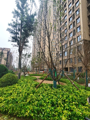 景觀工程:1#2#樓南北兩側(cè)種植苗木,2#5#樓東側(cè)道路澆筑混凝土。