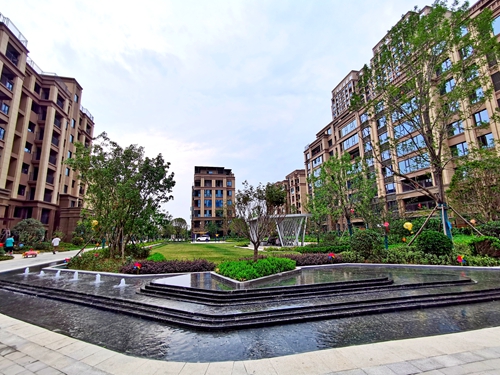 10#樓外墻真石漆施工完成,公共區(qū)域墻地磚鋪貼,大堂裝修施工。