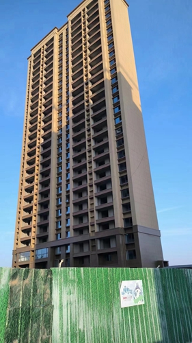 2、2號(hào)樓外墻保溫真石漆完成,內(nèi)墻粉刷完成,窗框玻璃安裝完成,戶內(nèi)強(qiáng)電穿線完成。