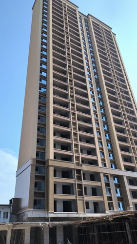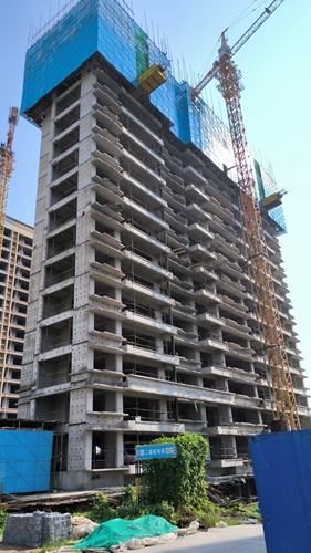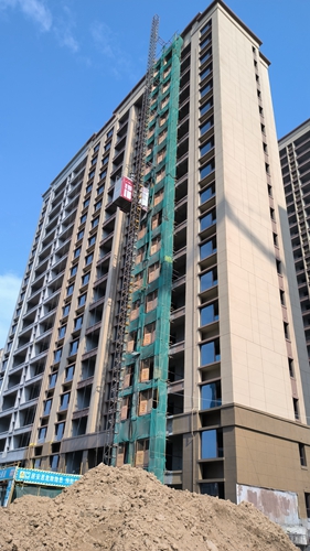 2、2#樓外墻真石漆完成,內墻粉刷完成,窗框玻璃安裝完成。