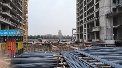 11、7#樓南側(cè)車(chē)庫(kù)梁板柱鋼筋綁扎完成50%。