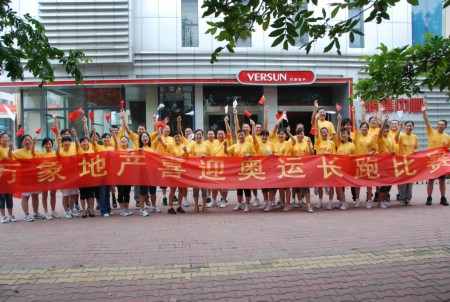 為體現(xiàn)企業(yè)關(guān)注奧運(yùn)盛會(huì)的社會(huì)責(zé)任感,弘揚(yáng)我公司健康向上的企業(yè)文化精神,公司在8月7日上午7:40在萬(wàn)象新天小區(qū)門(mén)前廣場(chǎng)舉辦了“萬(wàn)象地產(chǎn)喜迎奧運(yùn)長(zhǎng)跑比賽”。公司全體人員參加了此次比賽,每一個(gè)人都奮勇?tīng)?zhēng)先,爭(zhēng)分奪秒,在3公里的路程里沒(méi)有一人中途放棄,充分展示了參賽員工良好的身體素質(zhì)和昂揚(yáng)向上的精神風(fēng)貌。最后采供部呂超、工程部張新勝、營(yíng)銷(xiāo)部王幸波、牛艷麗、許亞麗榮獲本次比賽的前五名。